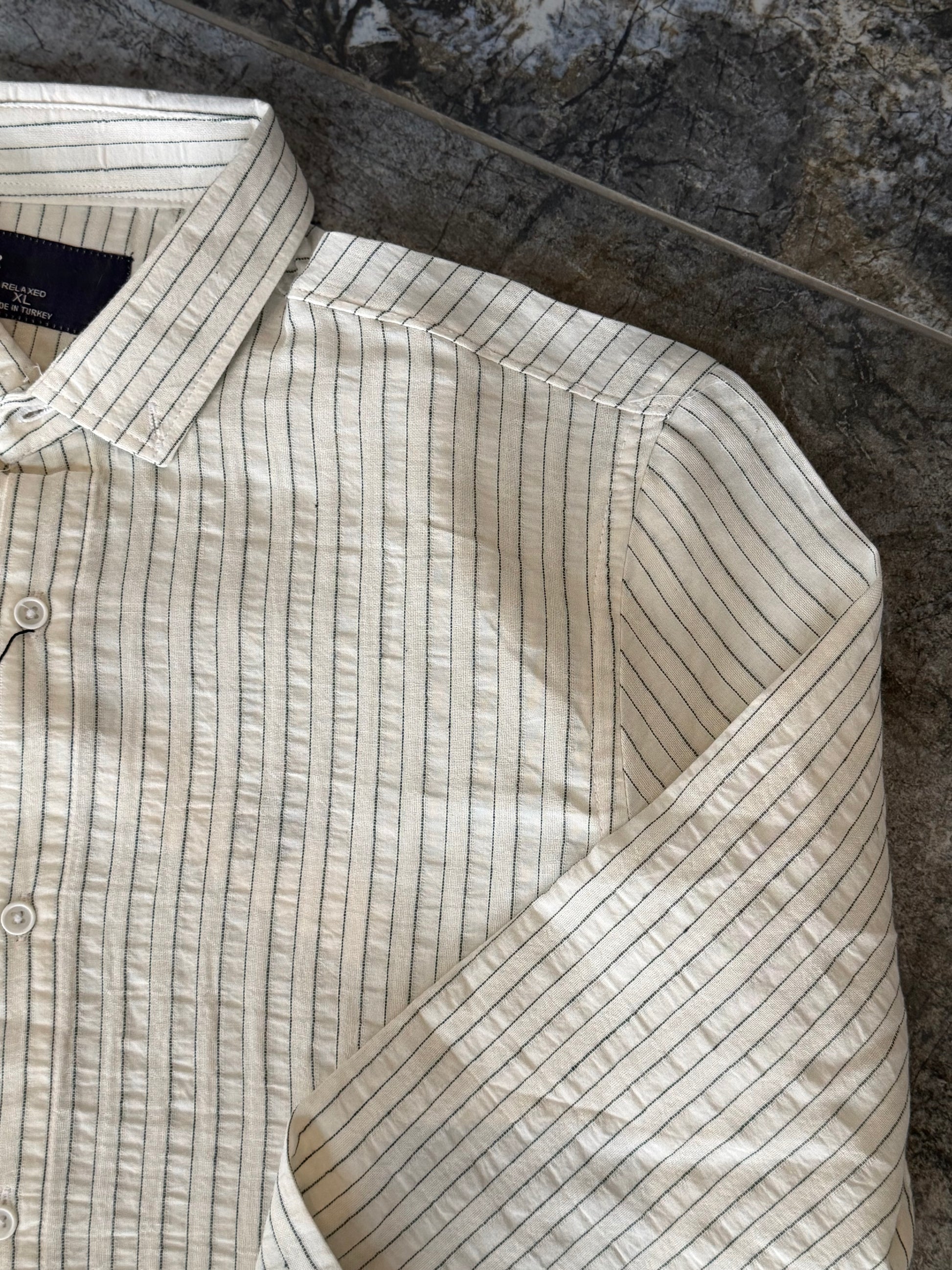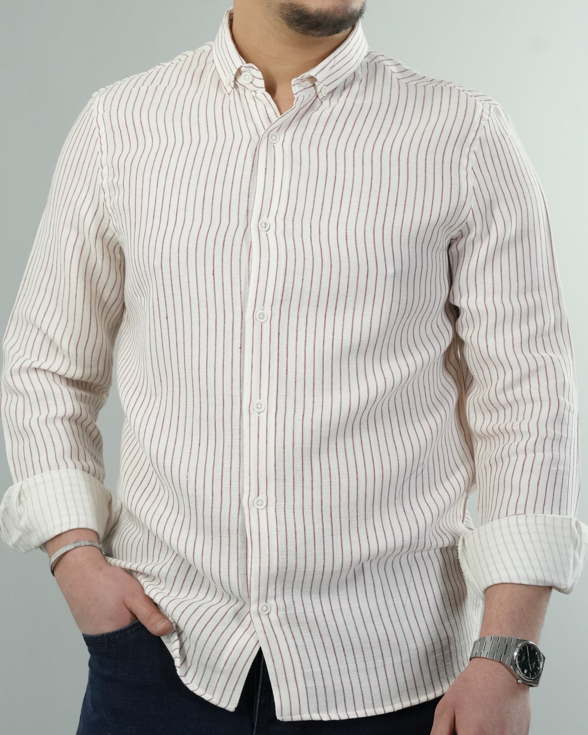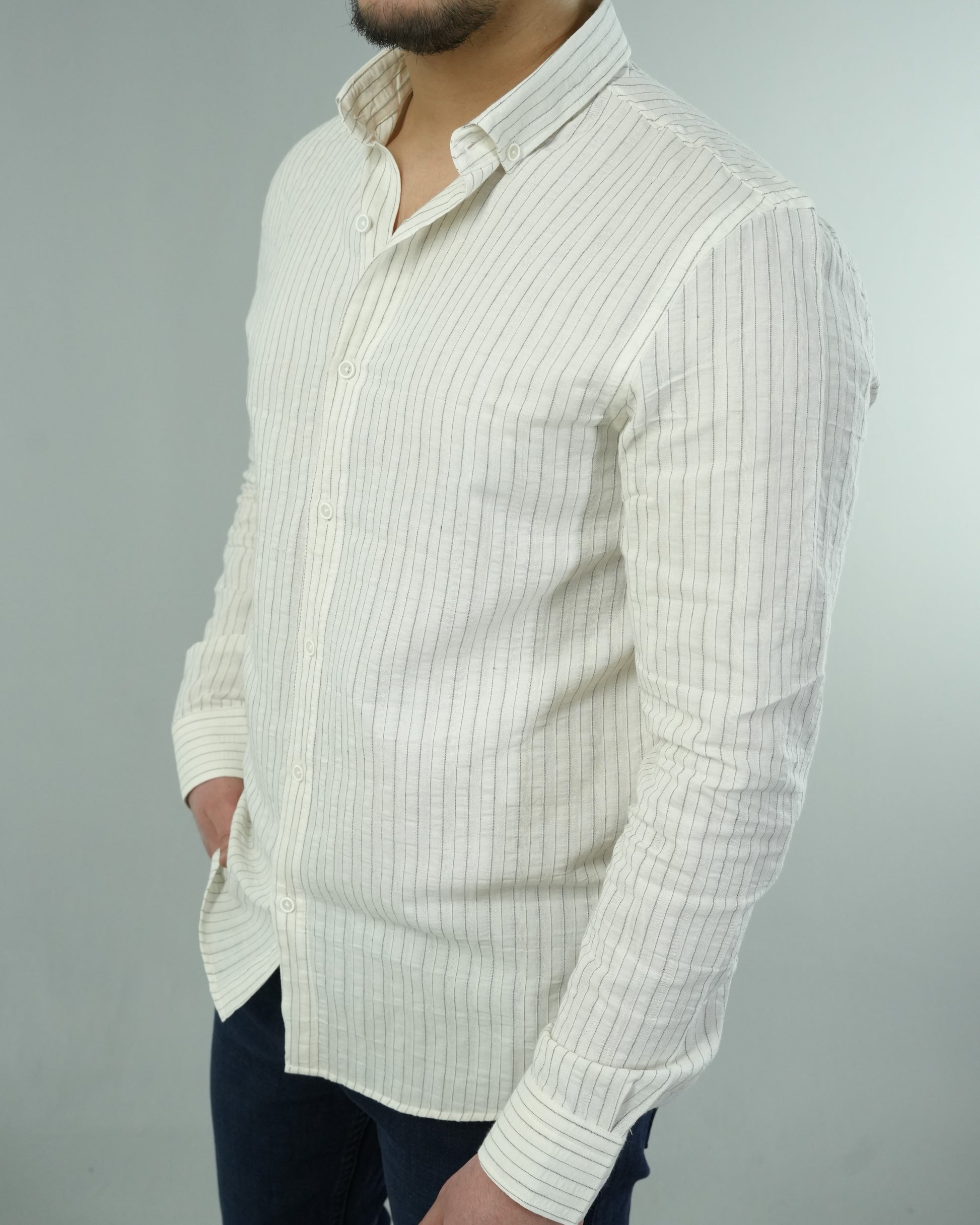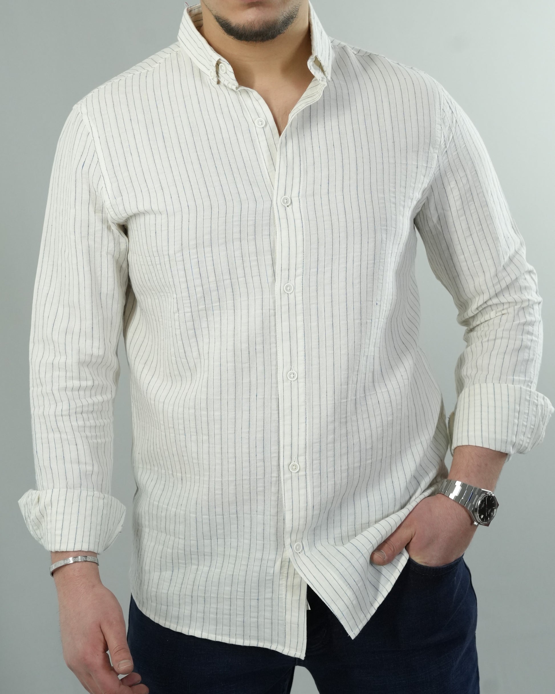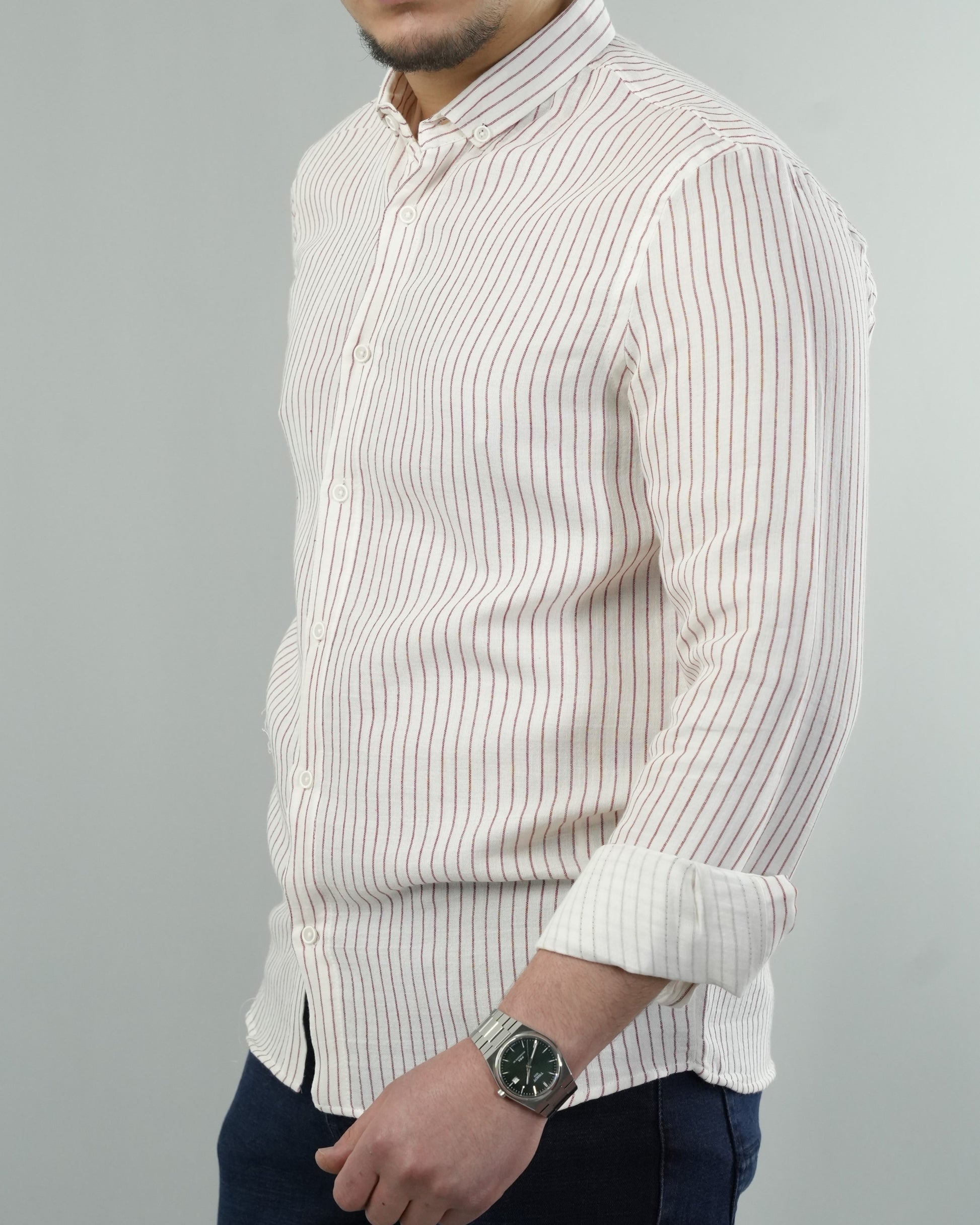 Erkek Çizgili Keten Dokulu Gömlek