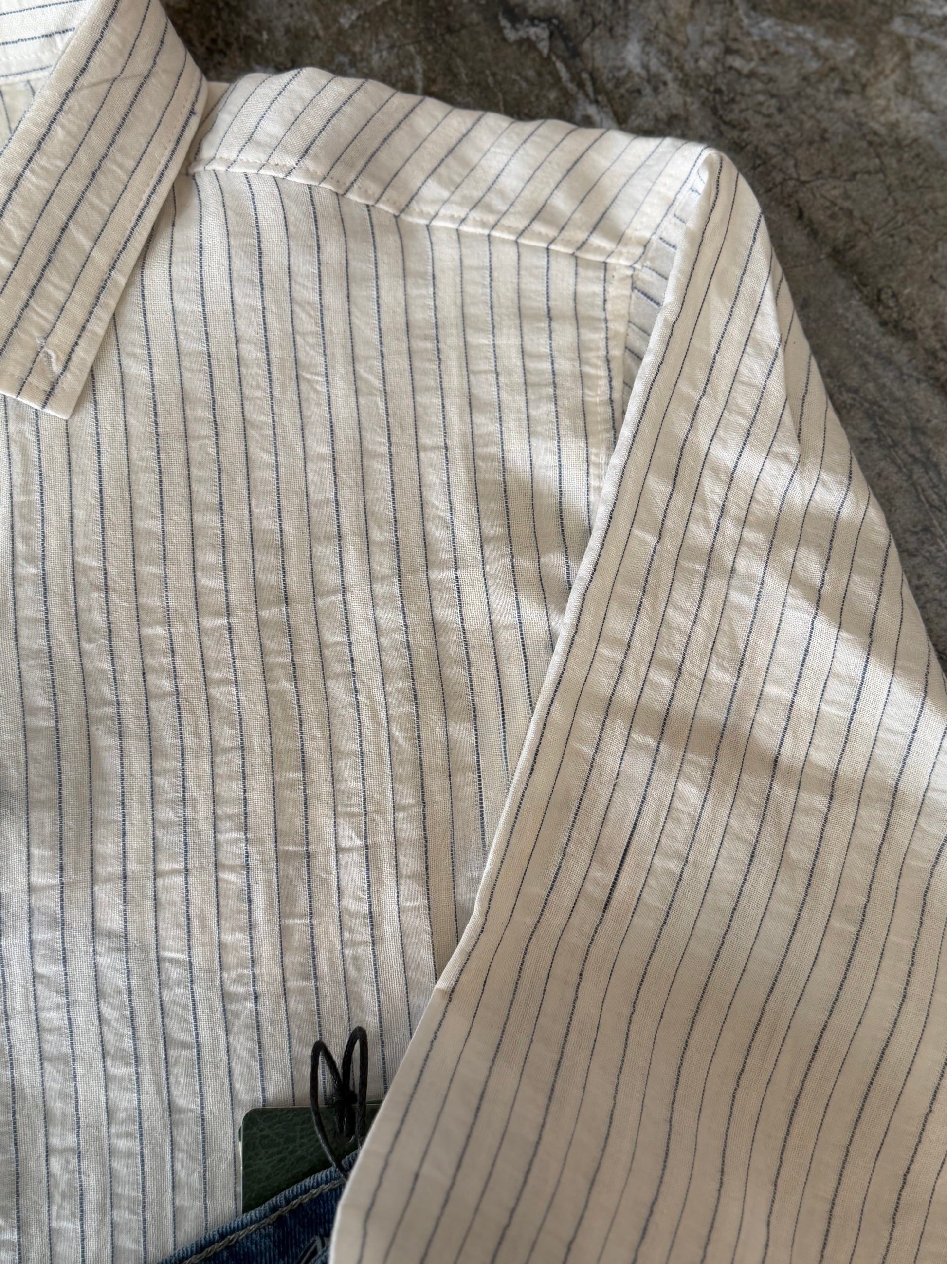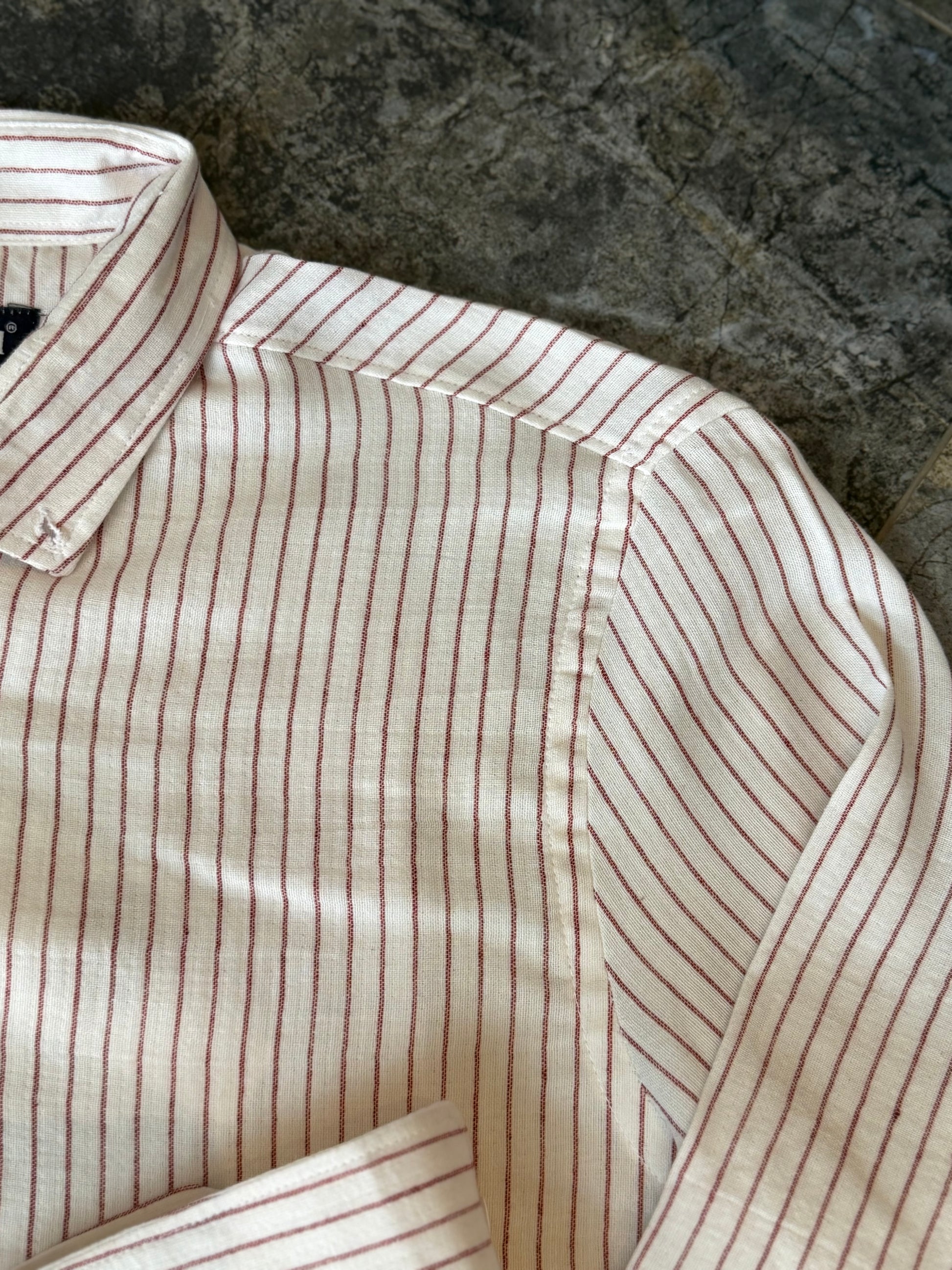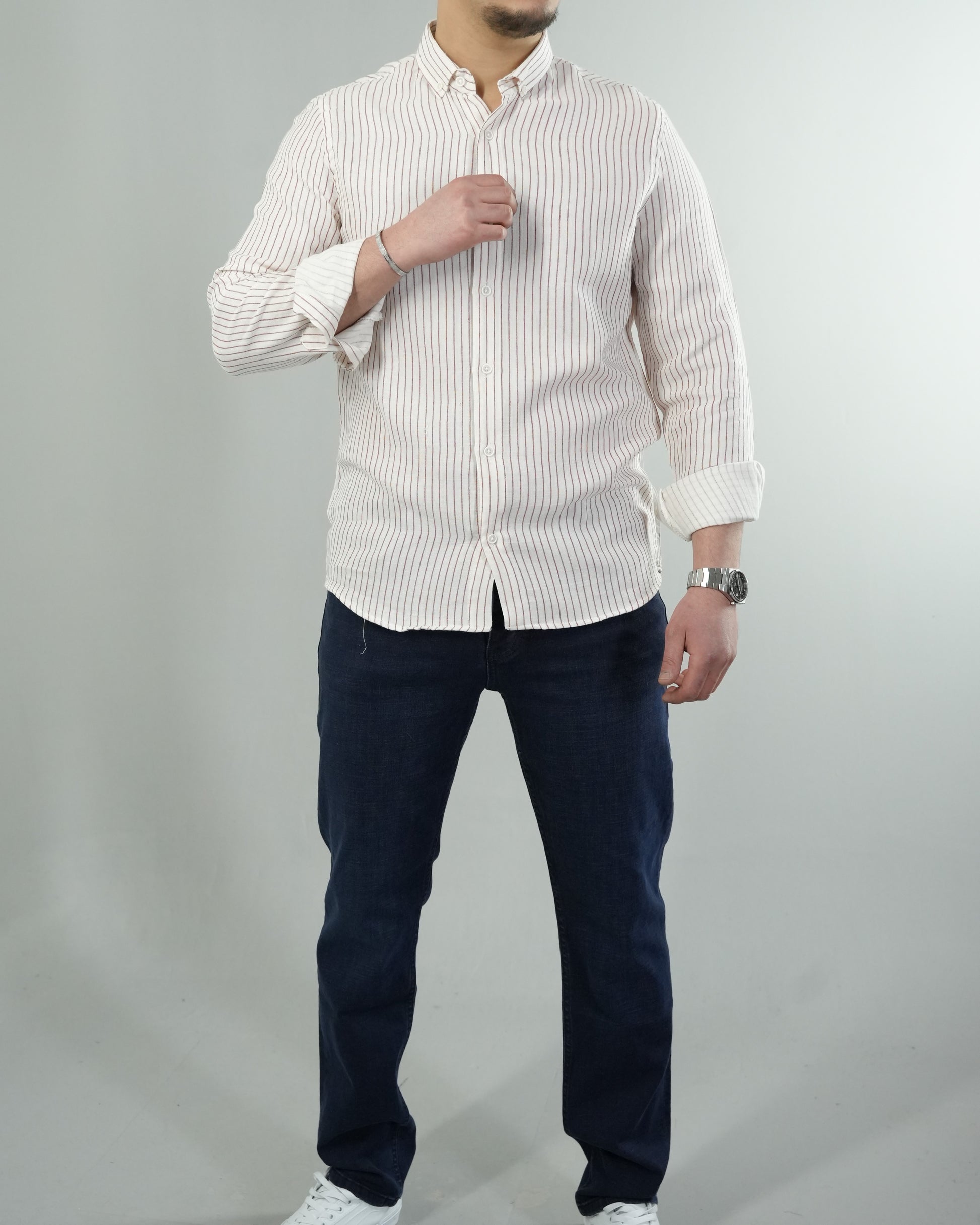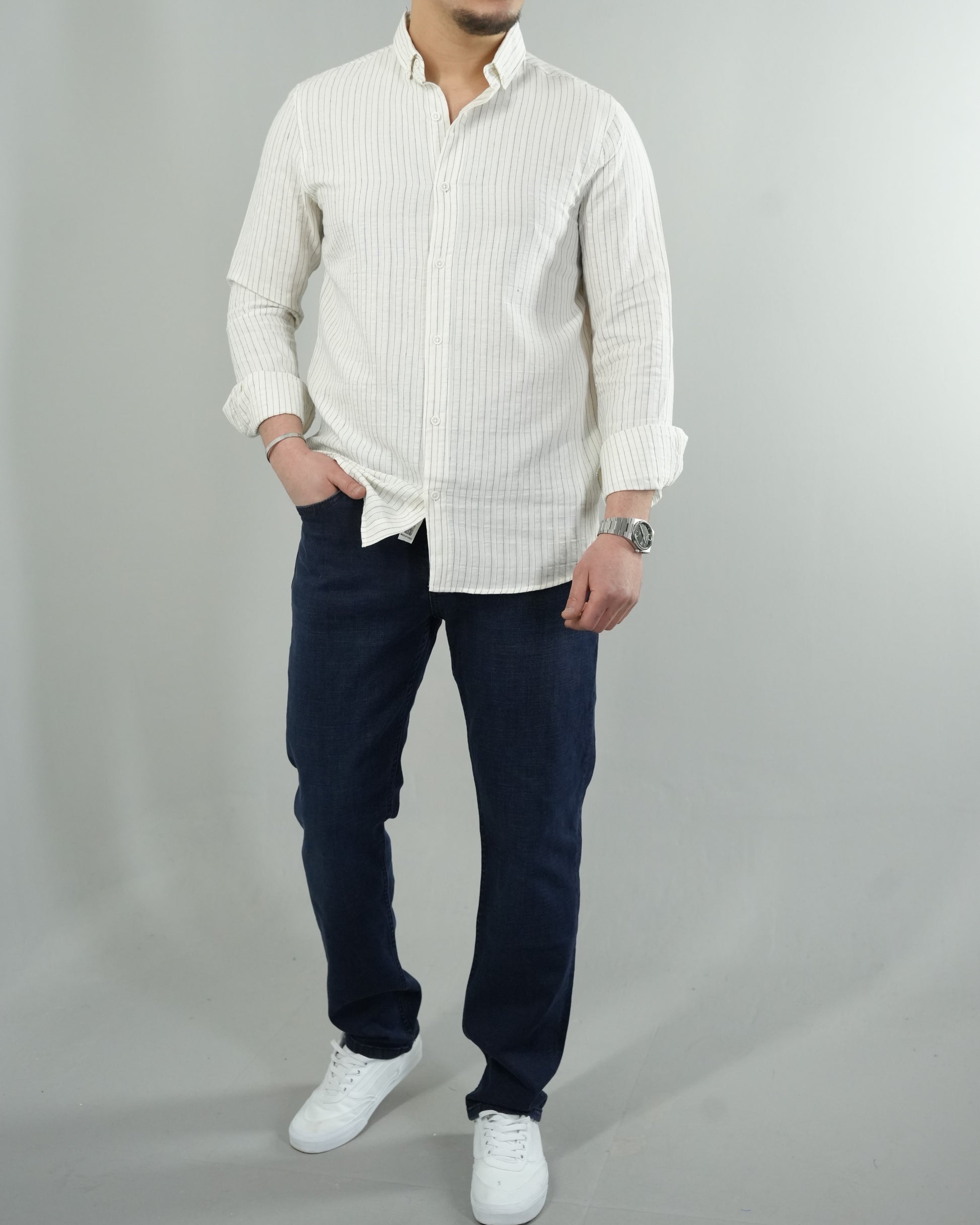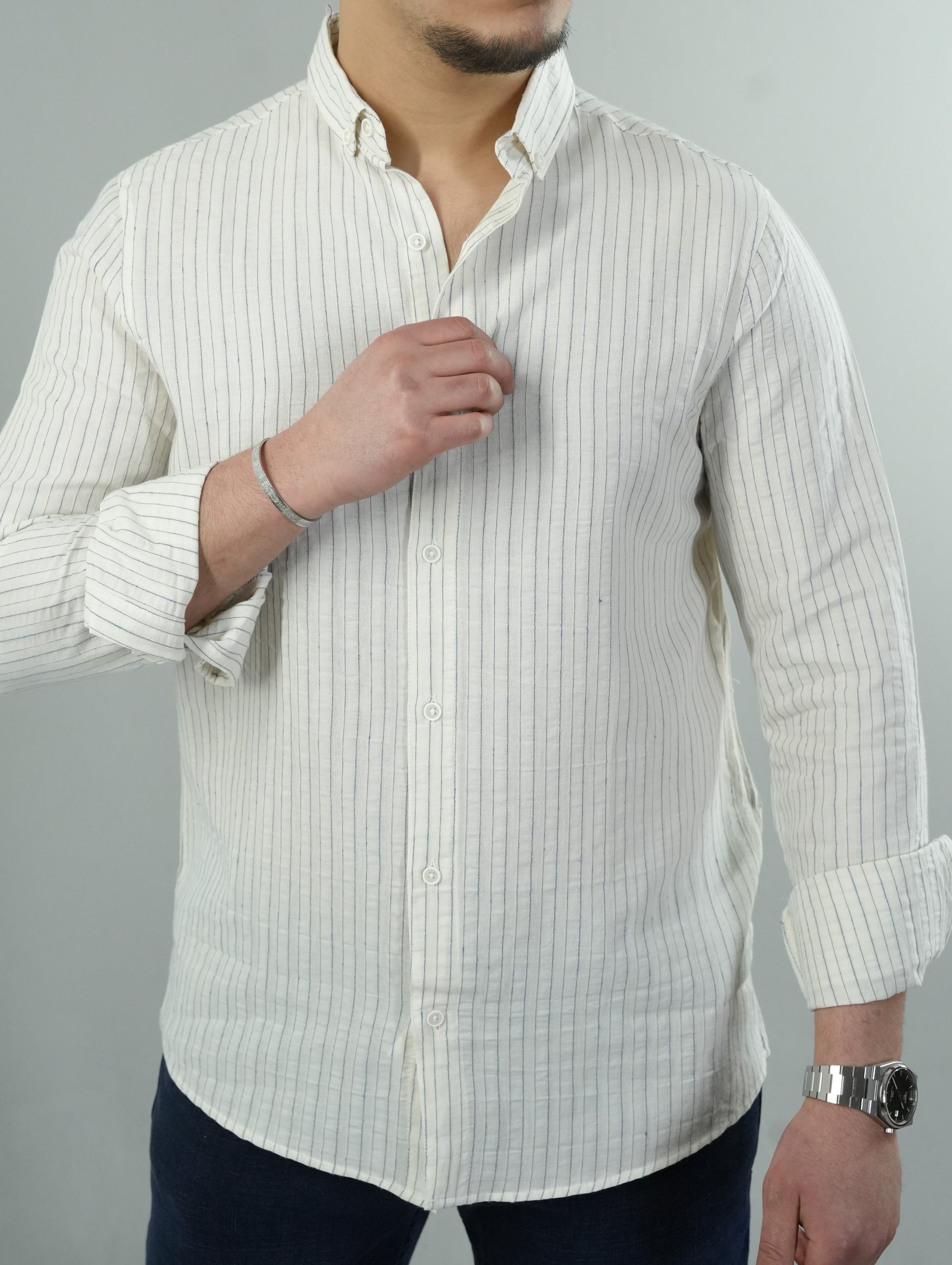 Erkek Çizgili Keten Dokulu Gömlek