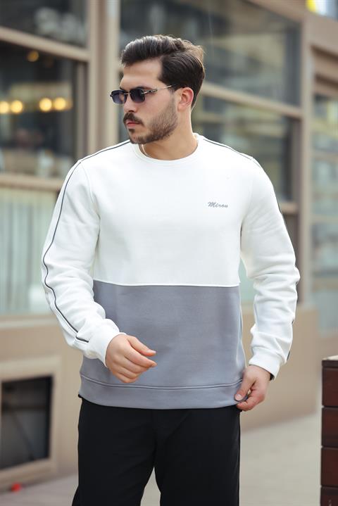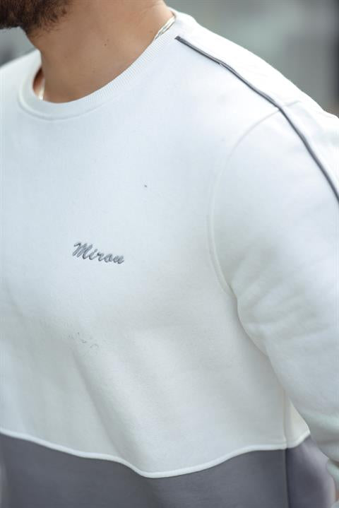 Miron Beyaz Gri Sıfır Yaka İki Renk Regular Fit Sweatshirt 2459