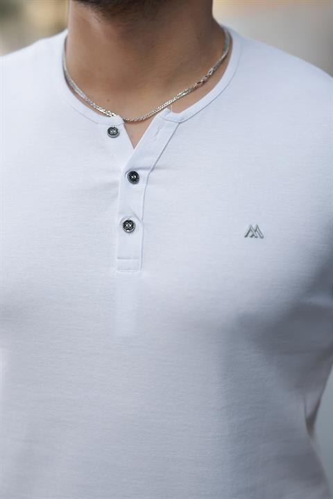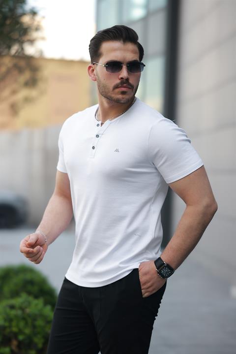 Miron Beyaz Önü Düğmeli Sıfır Yaka Kısa Kollu Regular Fit Tişört- 2510
