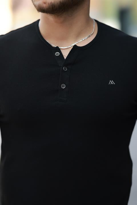 Miron Siyah Önü Düğmeli Sıfır Yaka Kısa Kollu Regular Fit Tişört- 2510