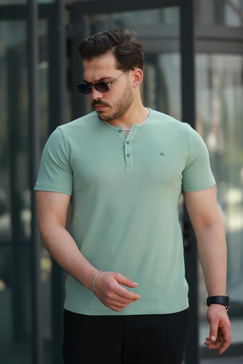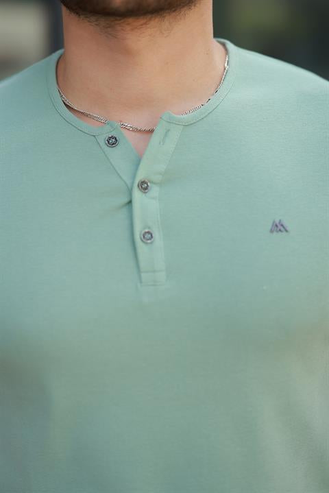Miron Su Yeşili Önü Düğmeli Sıfır Yaka Kısa Kollu Regular Fit Tişört - 2510